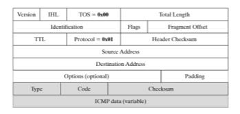 Below is a figure of IP packet format. The ICMP module can be seen in the shaded portion. Some of the important fields are mentioned below.