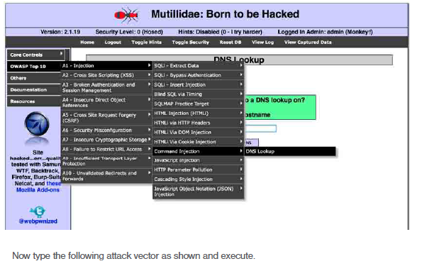 Now, let’s execute command execution vulnerability as listed in OWASP Top ten vulnerabilities. Browse to the following page.